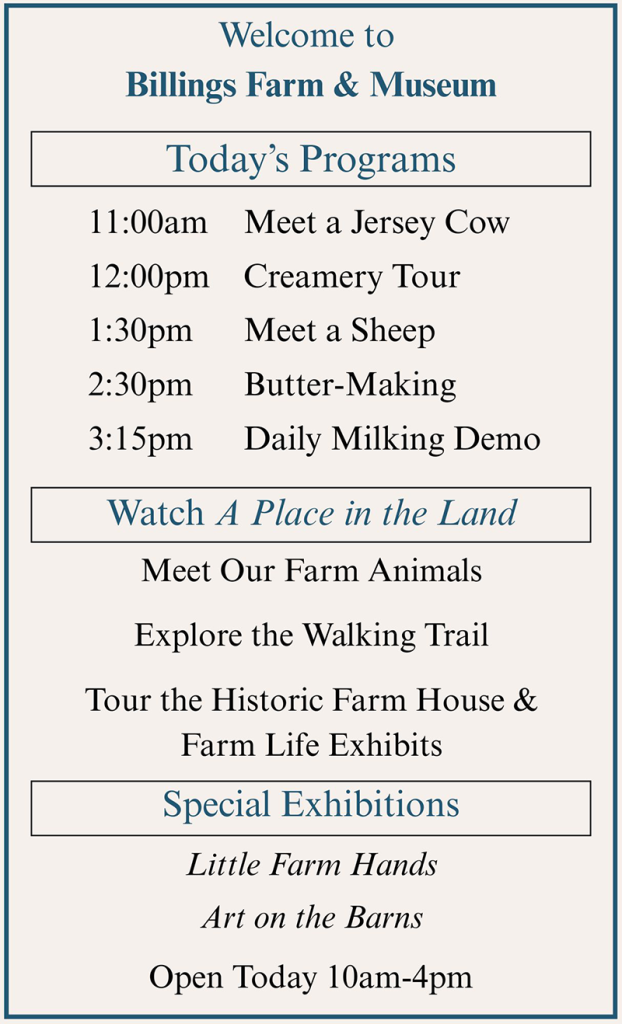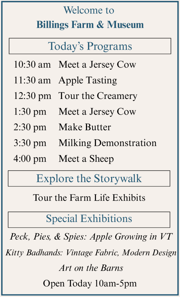 Cancellation Policy: Tickets are non-refundable unless the event is cancelled by Billings Farm & Museum.