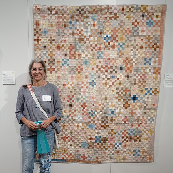 Judge’s Comments: “Each time I studied this quilt, I felt calm. The lovely, simple Nine-Patches that cover the surface with hand-dyed muted earth and sky toned linen fabrics just took my heart.”