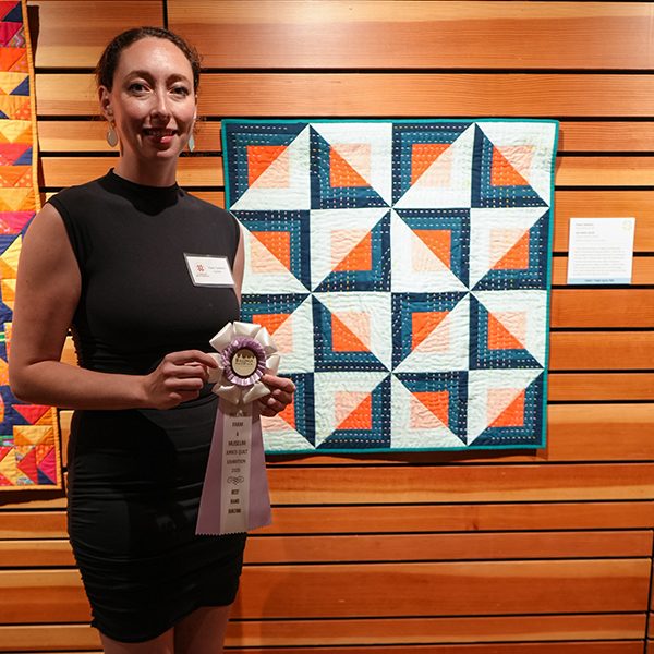 Judges’ Comments: “The even and well executed big stitch quilting is an important design element that elevates the entire piece.”