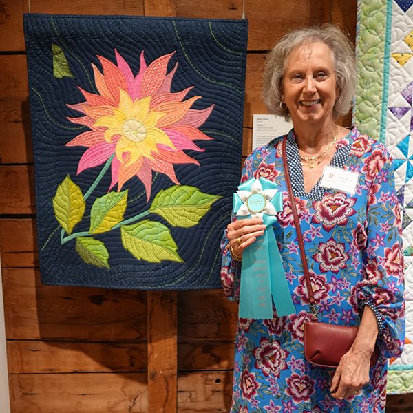 “I am a quilter and a gardener,” said Block. “Practicing both hobbies requires hope and vision.” Inspired by the first dahlia she ever grew, her quilt celebrates the beauty and complexity of nature in bloom.